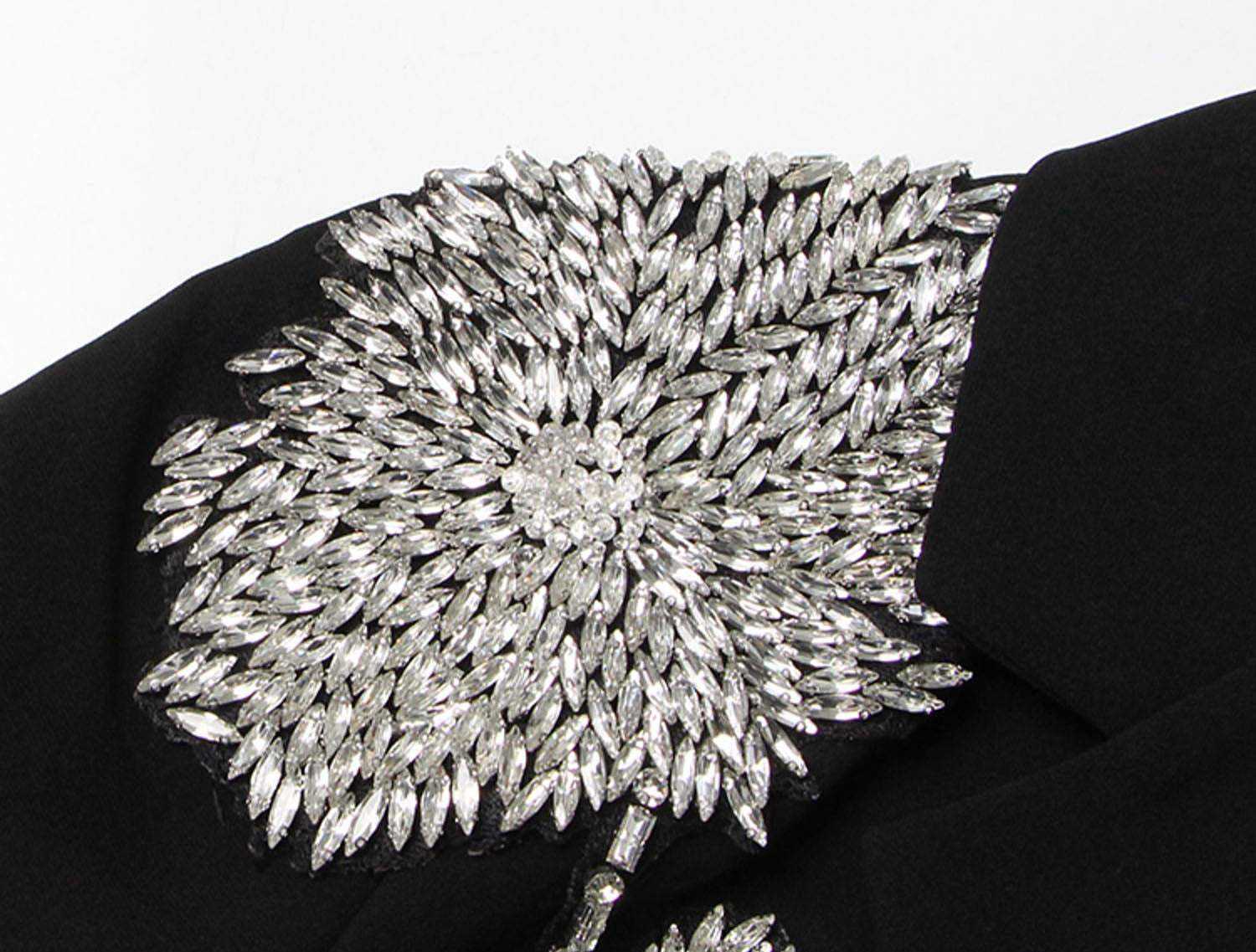 OUDINA Women's Elegant Blazers Wholesale Three-dimensional Beaded Flower Jacket with Button Decoration Solid Pattern Woven Weave